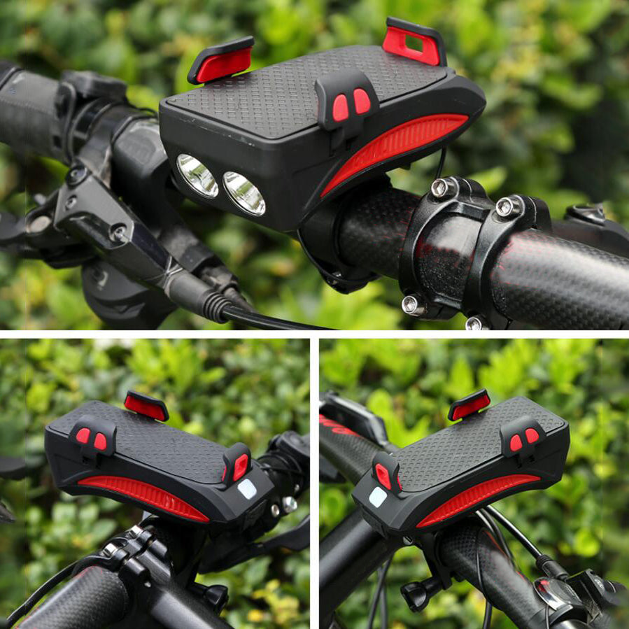 3 In 1 Bicycle Mobile Phone Bracket Bike Front Light 130dB Bike Horn 4000mA Version