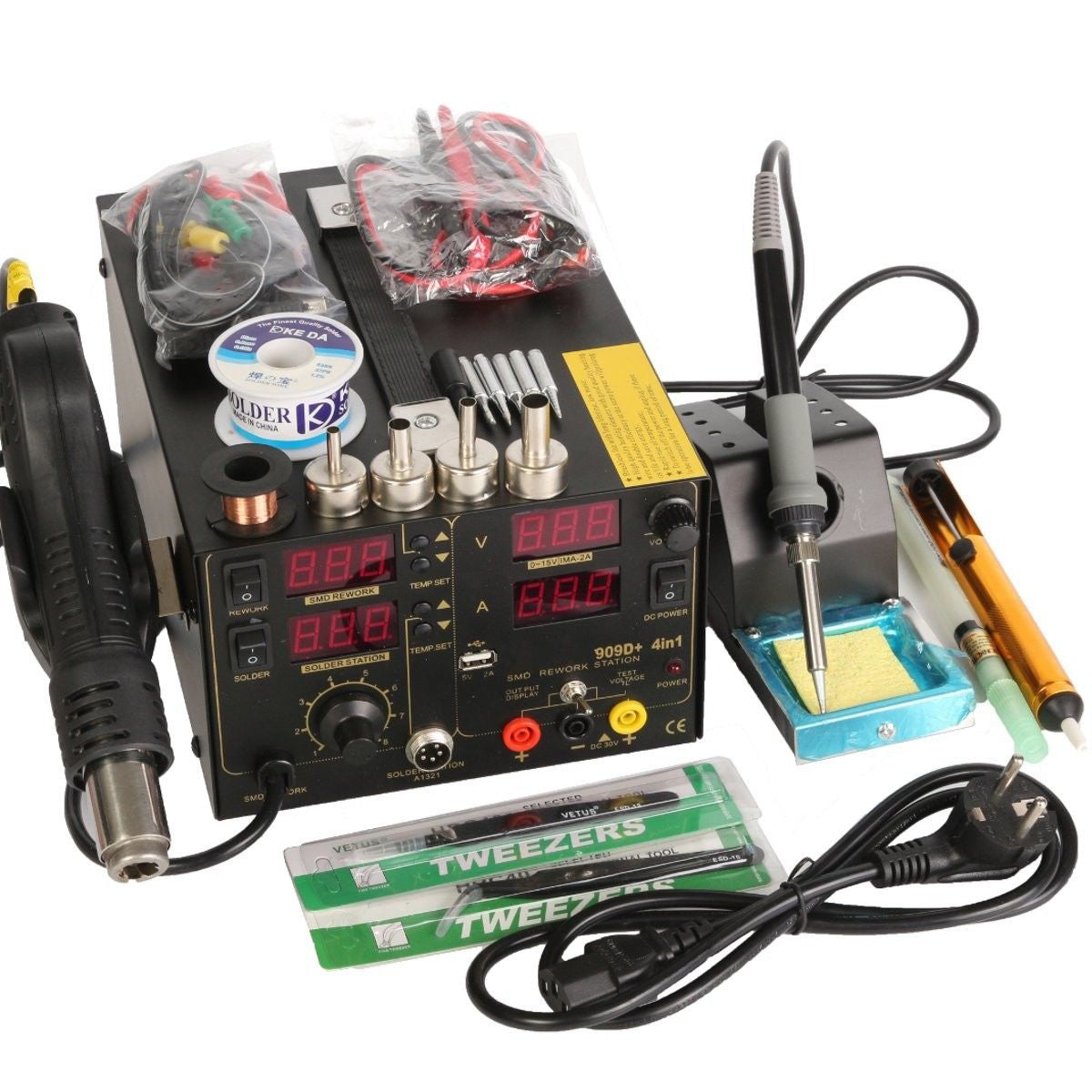 3 In 1 Soldering Rework Station 220V + Hot Air Gun + DC Power Supply with Full Accessories 909D+