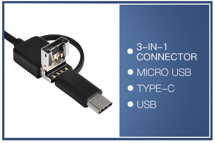 - 3-in-1 Connector: integrates micro USB, type-C and USB