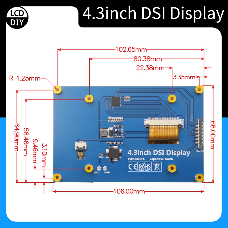 4.3 Inch DSI Display 800x480 IPS Display Capacitive Touch Drive-Free For Raspberry Pi MIPI DSI Port