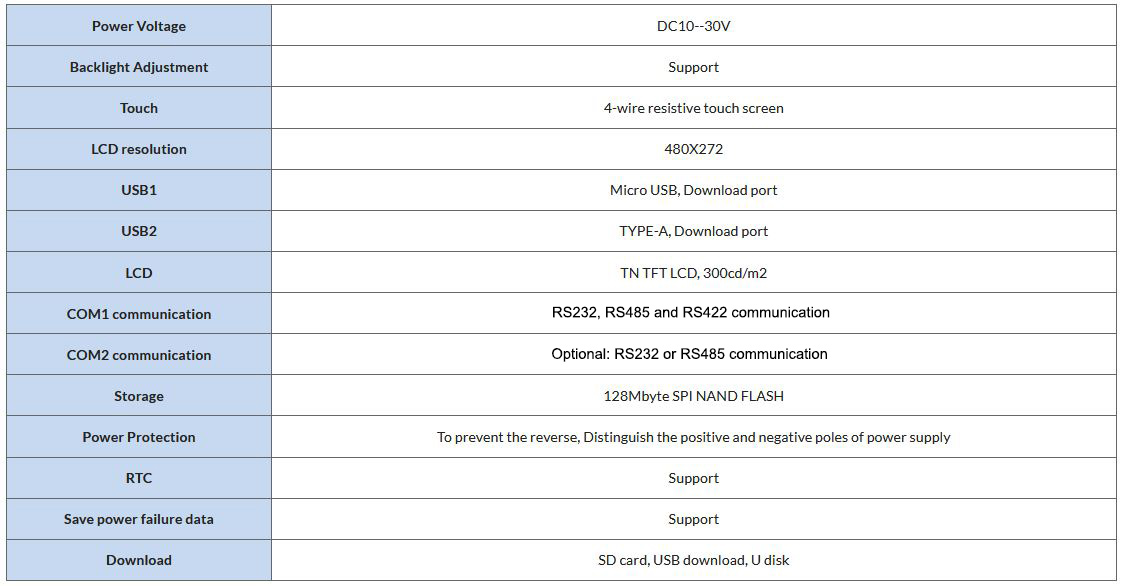 The 4.3 Inch Serial Port HMI has a powerful database with real-time database to store various data, such as analog, discrete, character type, etc., to realize data exchange with external devices. Besides, we have a programmable command language. There is a programmable command language, so that users can program according to their needs and rub strong graphical interface. Finally, our products have the feature of ruggedness and durability.