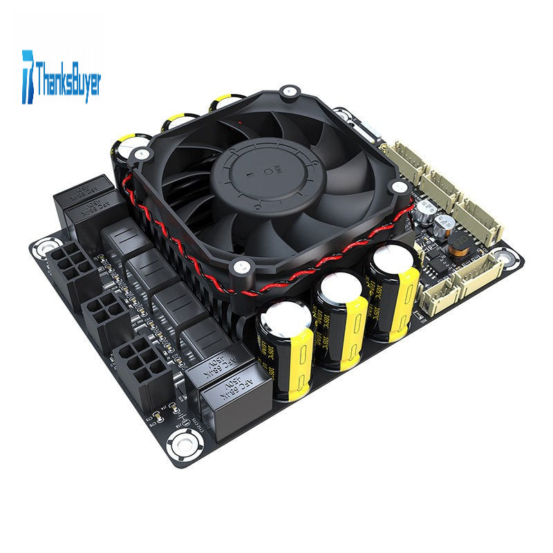 - JAB5 is a 4CH audio amplifier board integrated with Bluetooth 5.0 (supporting for aptX HD) and ADAU1701 DSP, offering a real all-in-one audio solution for customers. JAB5 delivers 100W output power per channel into a 6Ohm load. Besides Bluetooth input, JAB5 supports line input and I2S input. Thanks to the equipped ADAU1701 DSP, JAB5 supports programming with Sigma Studio, APP control and PC UI control after connection with WONDOM ICP5 or higher version(s), through which, you can adjust volume, gain, frequency and EQ setting to customize your own audio. In addition to 4.0 mode (4 x 100W), JAB5 supports configuration as 2.1 mode (2 x 100W + 1 x 200W), 2.0 / 0.2 mode (2 x 200W), applicable for various audio projects. Furthermore, JAB5 can cascade with another JAB5 to build audio 8.0 or other systems. Wireless audio input, integrated ADAU1701 DSP, multiple output modes and high-quality audio performance make JAB5 perfectly suitable for Bluetooth speakers, home audio, garden audio, digital crossover and DIY audio applications. A DC10V-39V power supply is required.