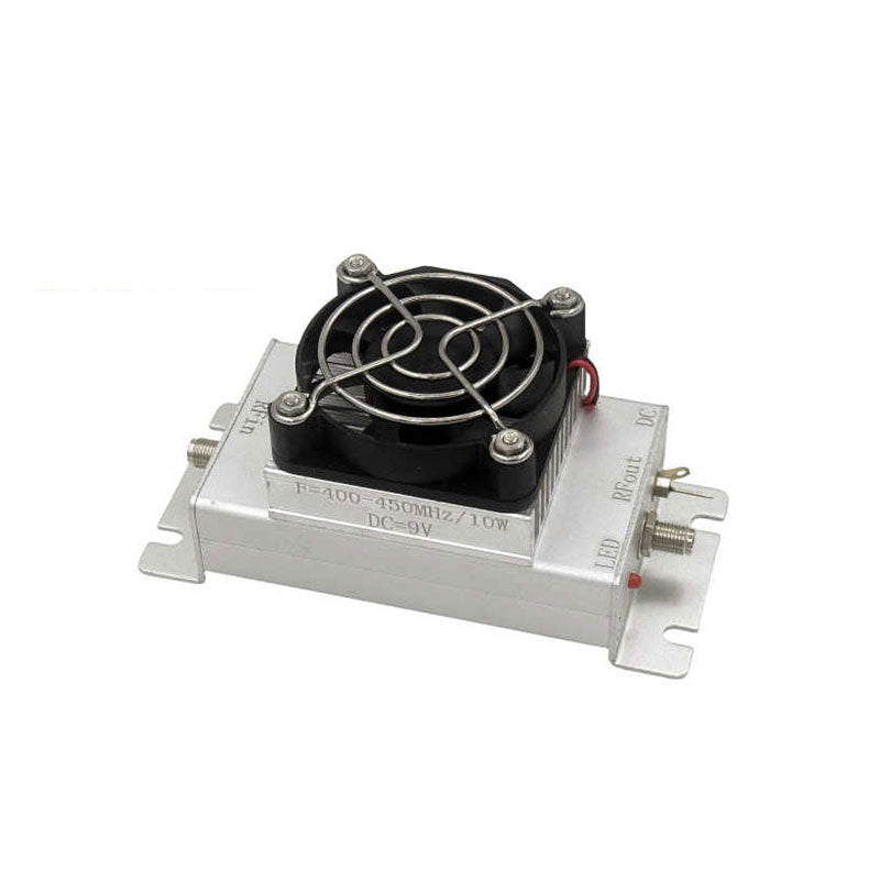 400MHz-450MHz 10W RF Power Amplifier RF Power Amp with 48dB Gain Heat Sink and Cooling Fan