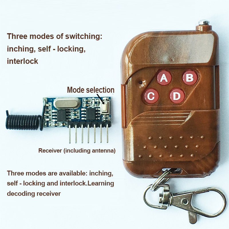 2.Self-locking: Press remote control once, the corresponding channel of the decoding module keeps output level signal. Press the remote control again, the decoding module stops outputting high-level signals. State changes once by pressing the button once.