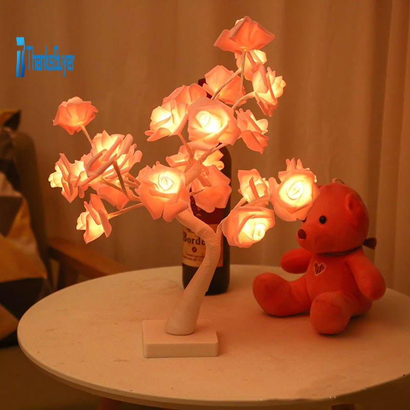 45CM/17.7" Rose Tree Lamp Tree Table Lamp 24-LED Room Artificial Tree Decor Valentine's Day Present