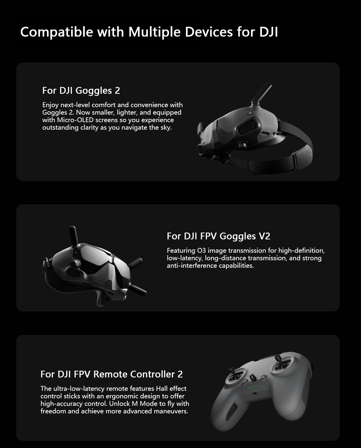 2. It is suitable for DJI Goggles 2, DJI FPV Goggles V2, and DJI FPV Remote Controller 2, which are sold separately.