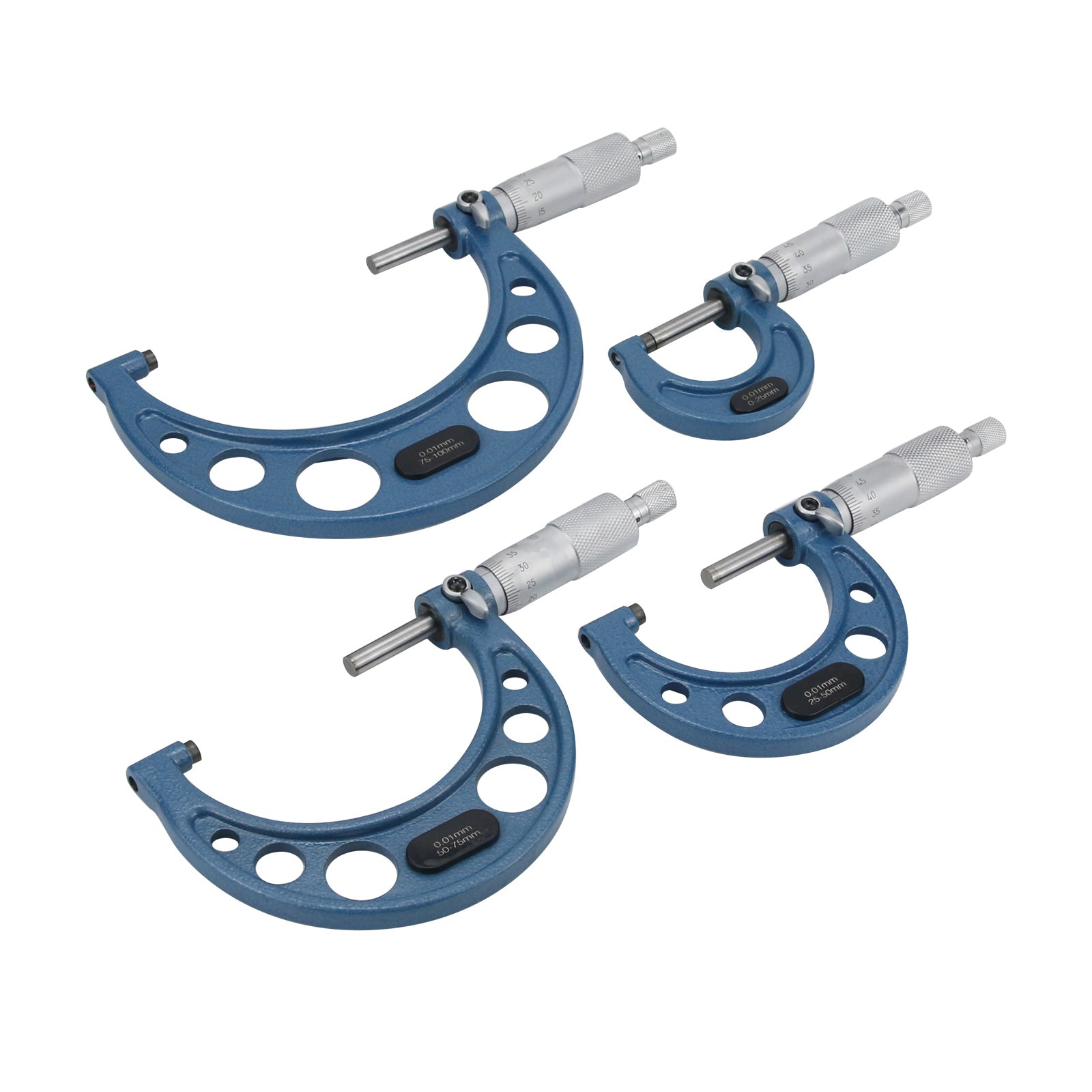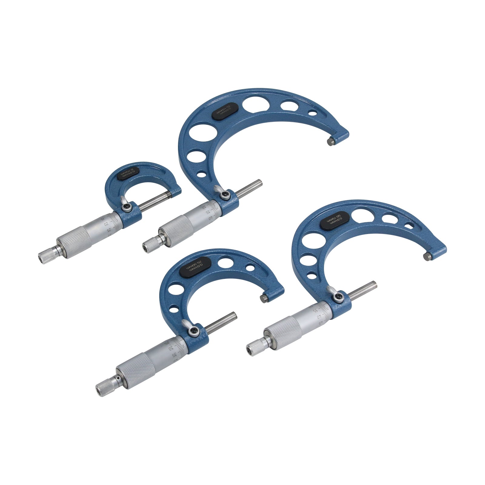 - 4 micrometers with measuring ranges: 0-25mm (0 - 1"), 25-50mm (1 - 2"), 50-75mm (2 - 3"), 75-100mm (3 - 4" )
