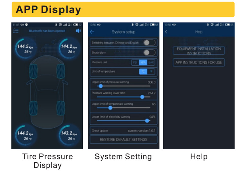 It was designed as a direct tire pressure monitoring system,installing pressure and temperature sensor on the tire, then displaying the real-time data on phone (For Android , IOS, IPad) through Bluetooth connection,