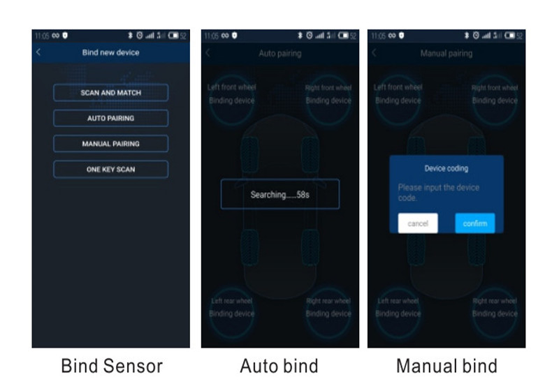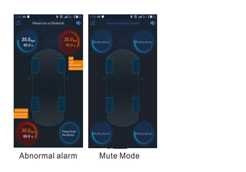 3: If tire pressure accelerates down or up continuously, please parking and check if there's any problem with the tire.