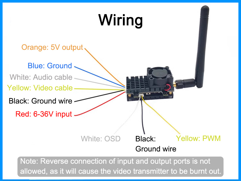 - Reverse connection of input and output ports is not allowed, as it will cause the video transmitter to be burnt out.
