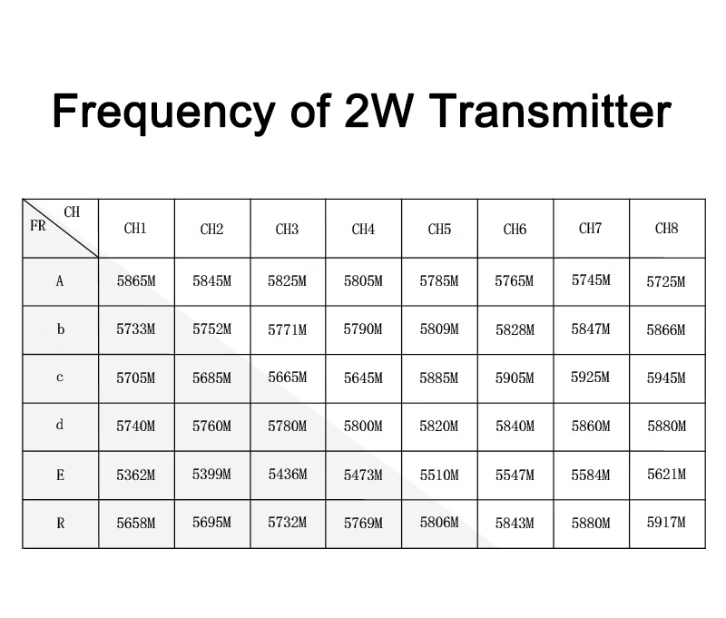 - Transmit power: 200mW/500mW/1000mW/2000mW/transmit off (Pit Mode)
