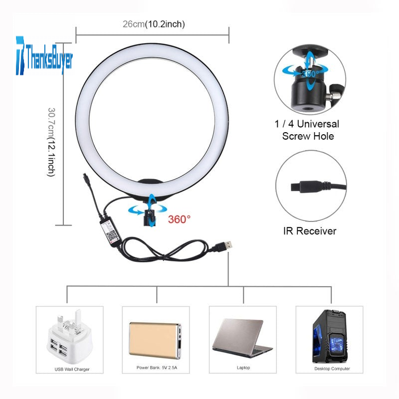 1. LED ring light can be mounted on the holder and take it anywhere, it can also be removed from the stand at any time, the tripod ball head can 360 degree rotating can free to adjust to any angle (The holder is not included).