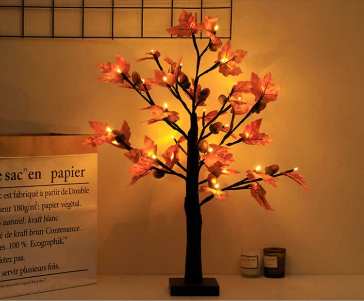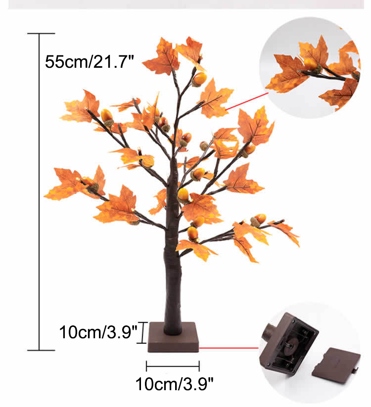 55CM/21.7" Maple Hazelnut Tree Table Lamp Room Light Tree 32-LED Christmas Holiday Desktop Decor
