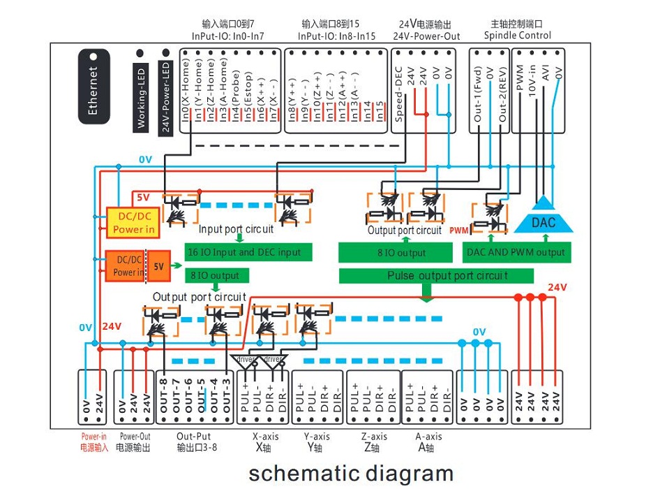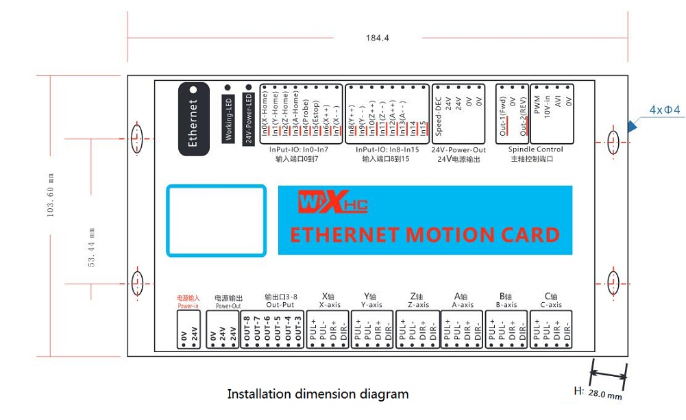 - 16 general-purpose input,8 output has speed function, the spindle actual speed Mach3