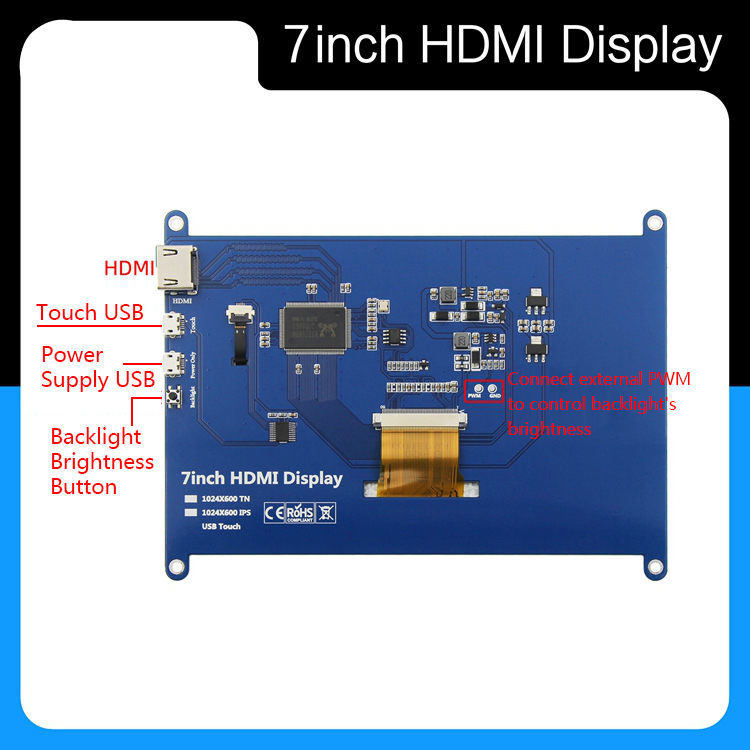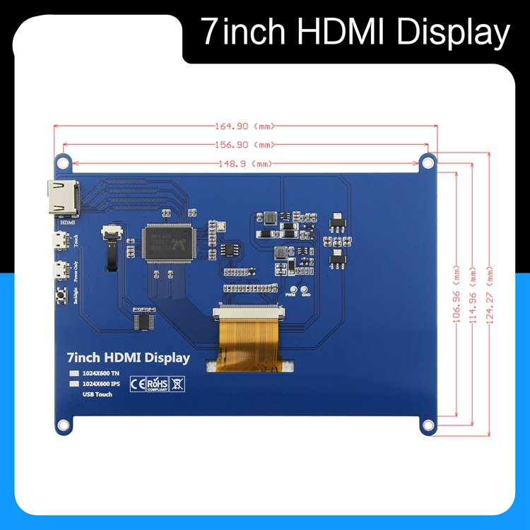 7 Inch HDMI Display USB Capacitive Touch Screen IPS Full Viewing Angle 1024x600 For PC Raspberry Pi