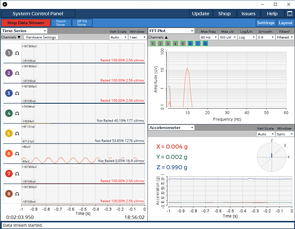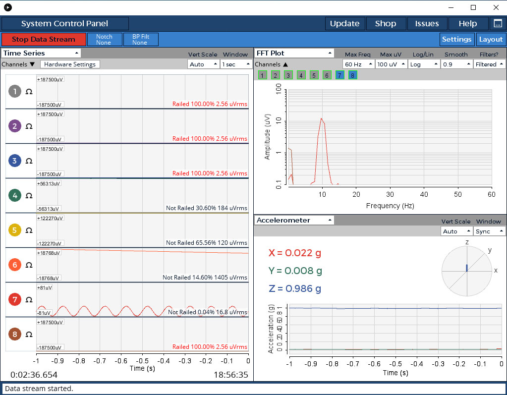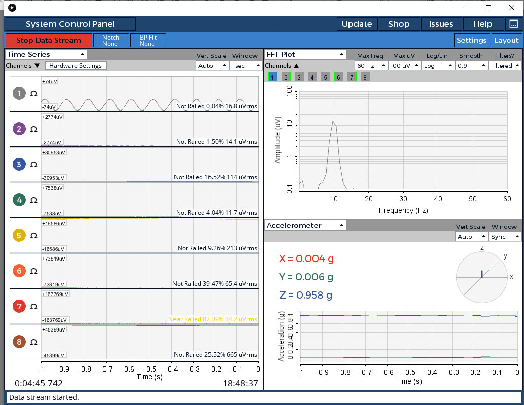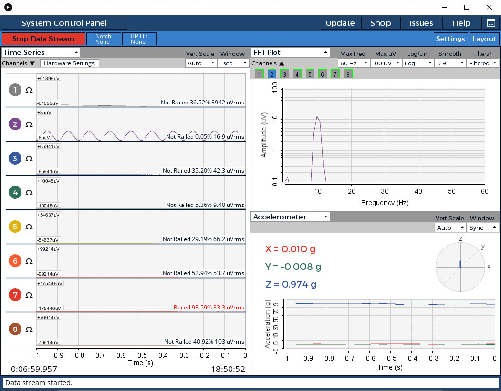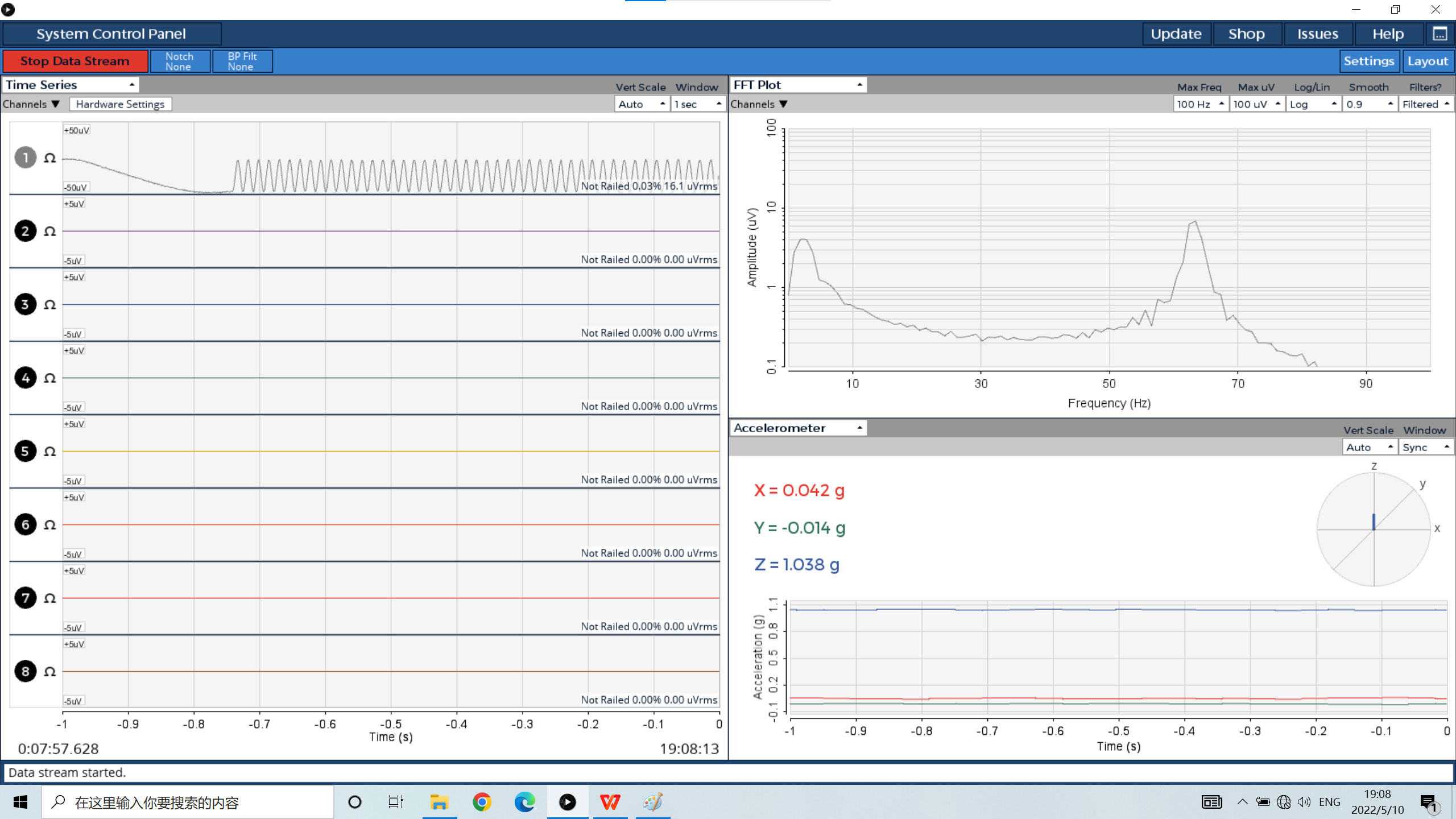 When the 8-channel acquisition board is connected, select WiFi, 8-channel, and 1K sampling rate