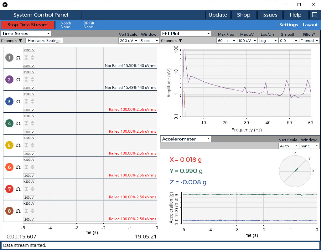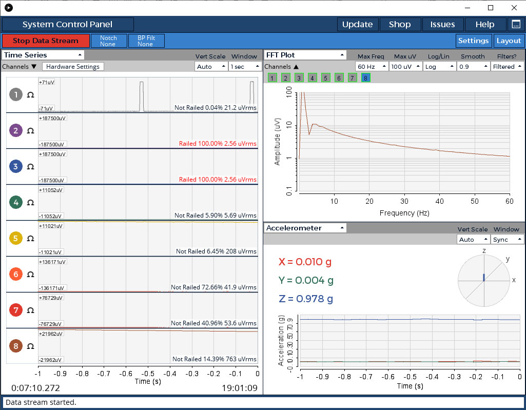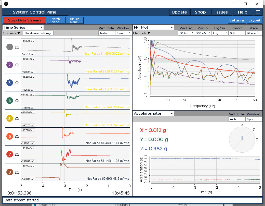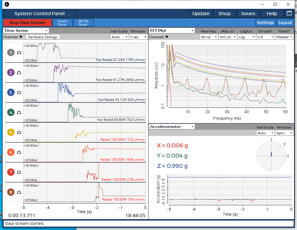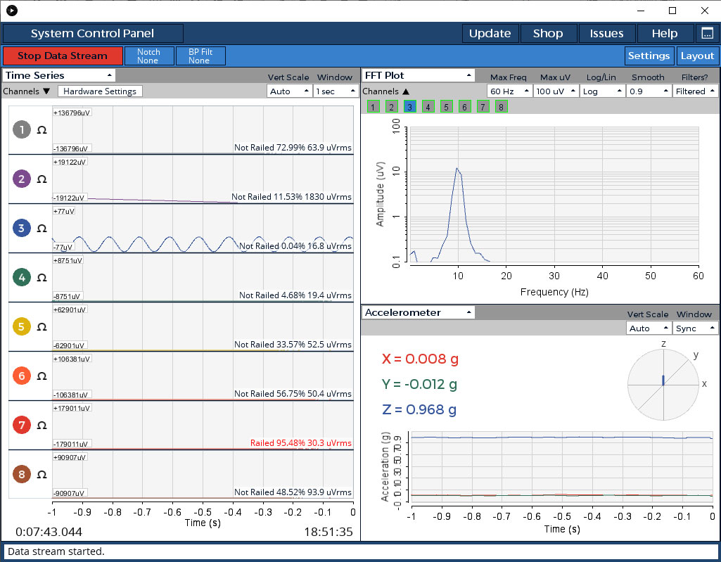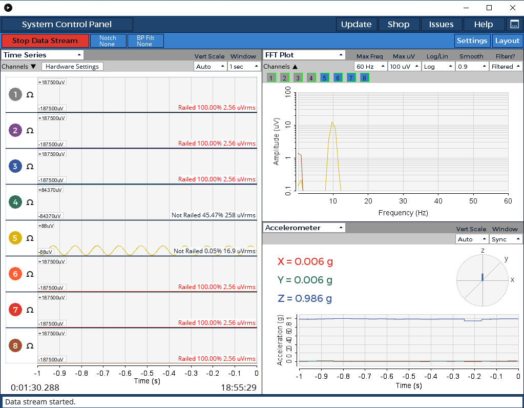 When the 8-channel acquisition board is connected, select WiFi, 8-channel, and 1K sampling rate