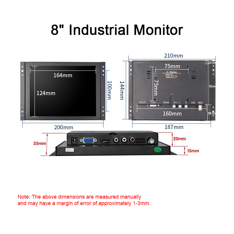 8" 1024×768 Industrial Monitor GC08-C Capacitive Touch Screen BNC VGA HDMI-Compatible AV USB Ports