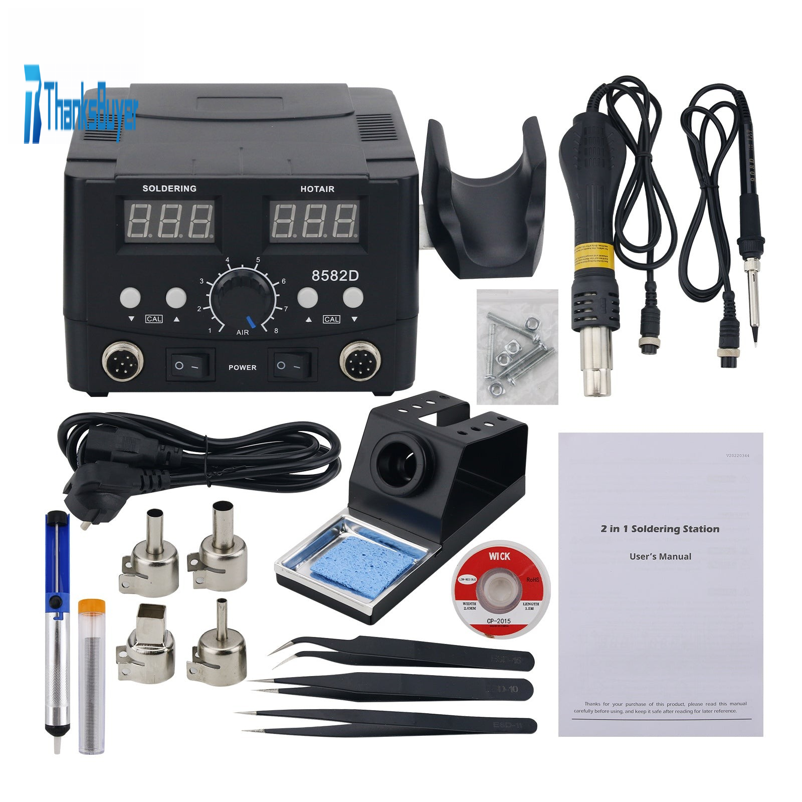 8582D 750W 2 in 1 Hot Air Gun & Soldering Iron Station Set w/ Dual Display Supports Automatic Sleep