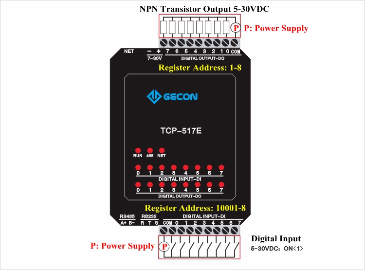 8DI + 8NPN Industrial Controller Data Acquisition For MODBUS TCP TCP-517E [Ethernet Communications]