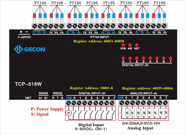 8PT100 + 8AI + 8DI Industrial Controller Data Acquisition Module TCP-518W [Ethernet Communications]