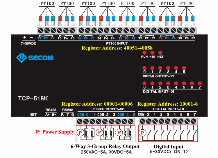 8PT100 + 8DI + 6DO Data Acquisition Industrial Ethernet IO Module TCP-518K [Ethernet]