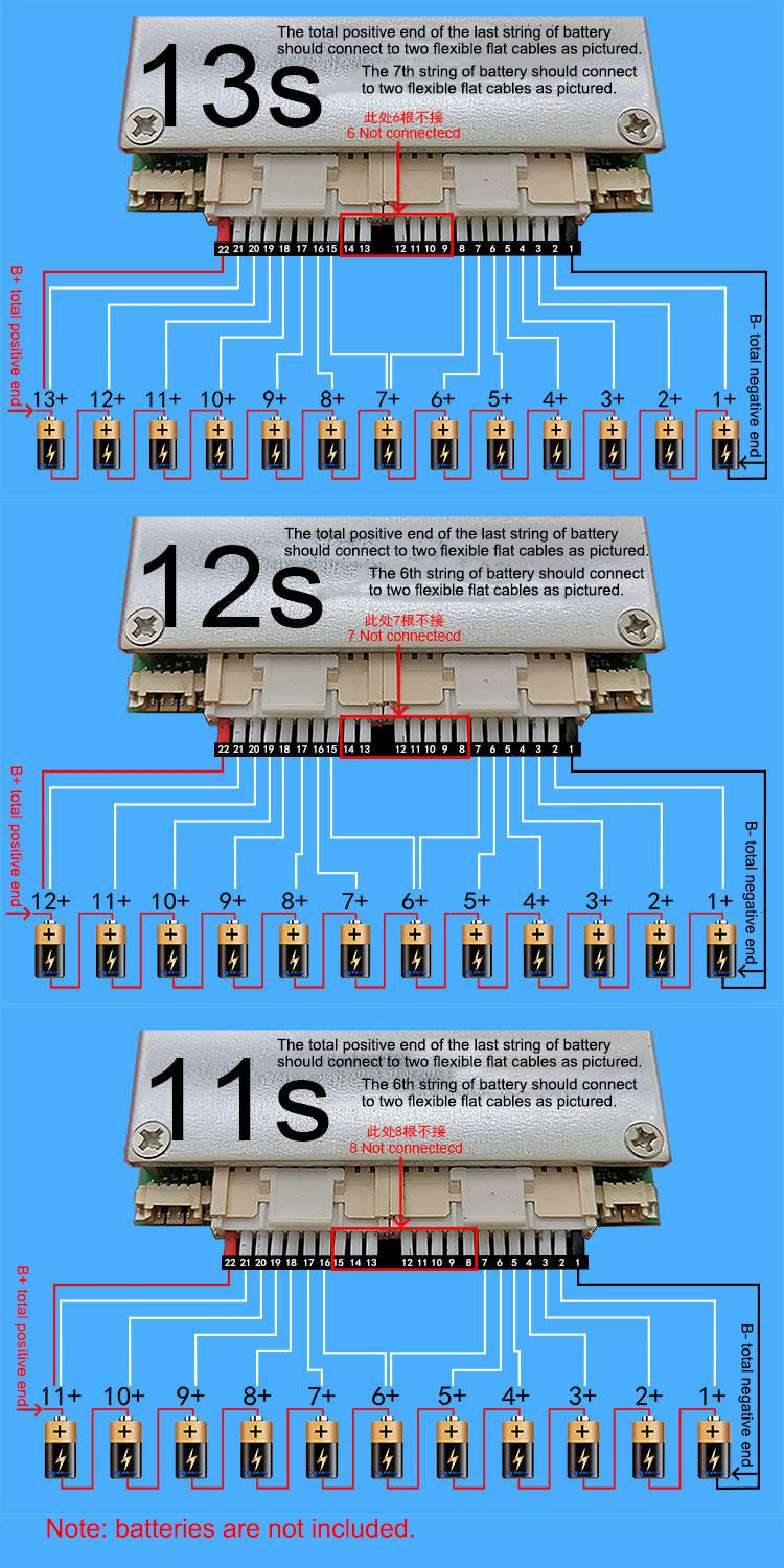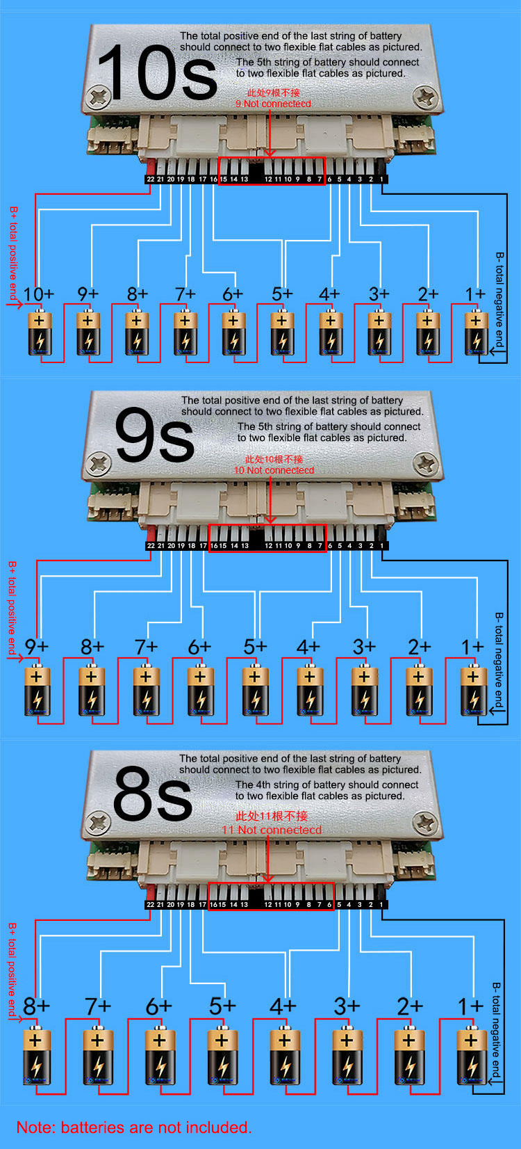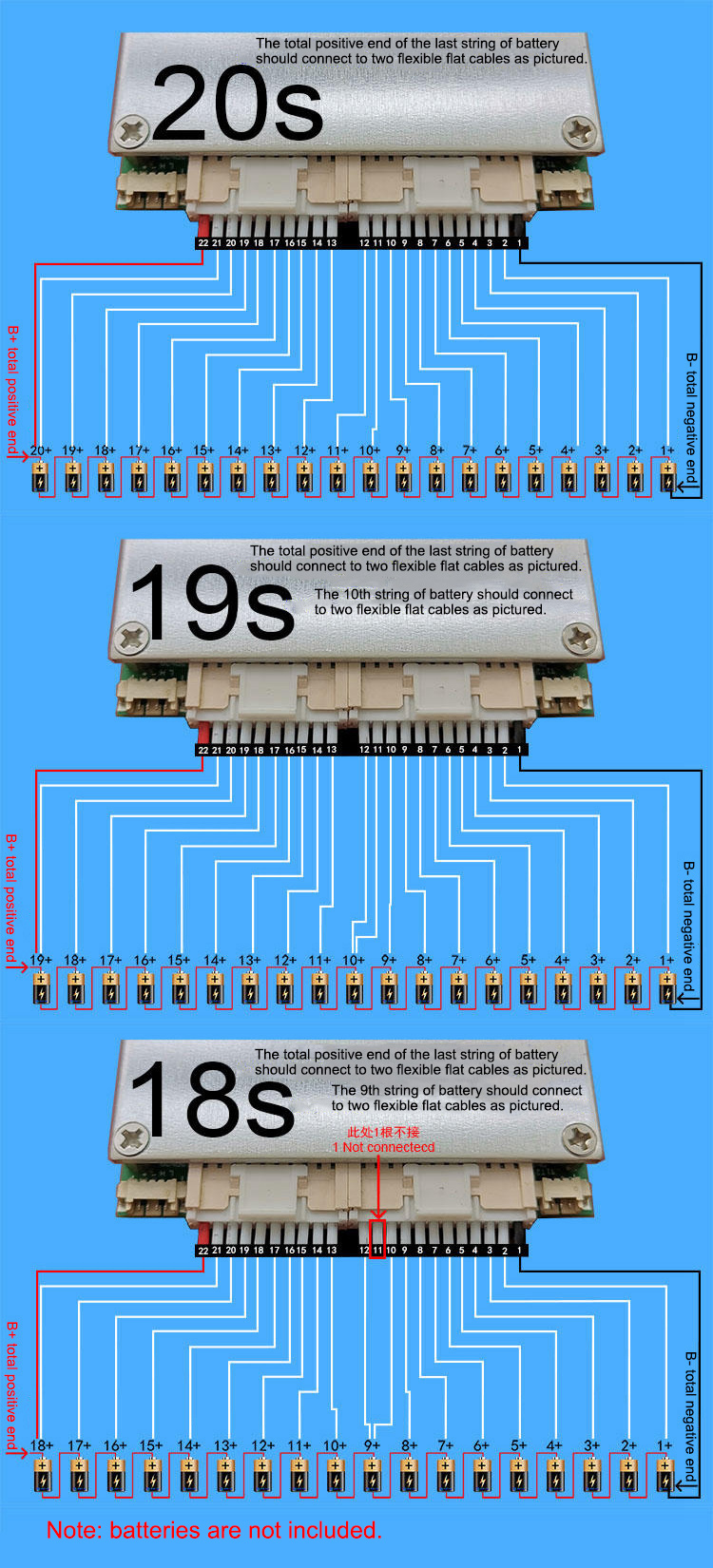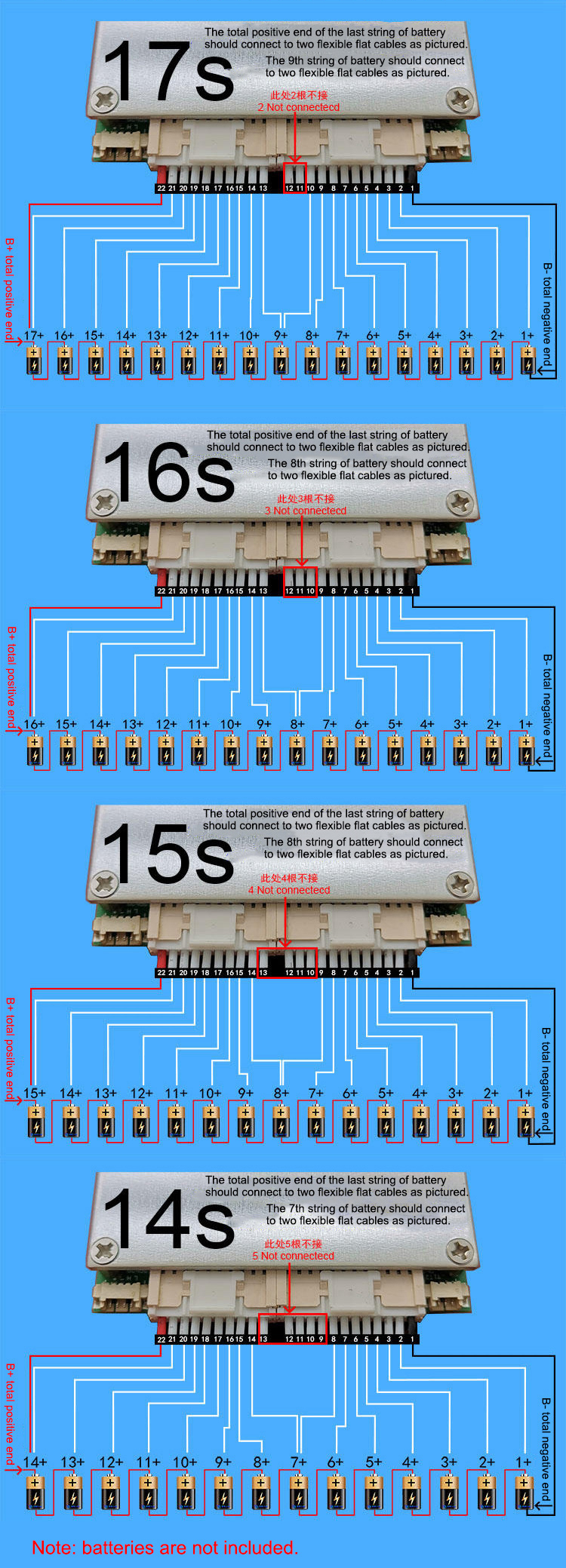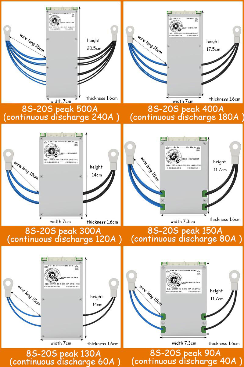 - Applicable batteries (8S to 20S Version): 8S to 20S Li-ion Battery; 8S to 20S Lifepo4 Battery; 8S to 20S LTO Battery