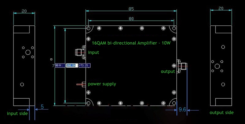 - The RF input is an SMA female interface , with a 2-wire power supply and 24V DC power supply. It is recommended to use a current greater than 3A.