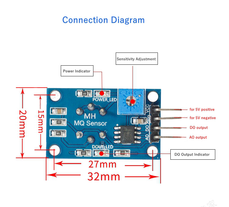 - AO output: 0.1 - 0.3V (relatively pollution-free), high concentration voltage is about 4V