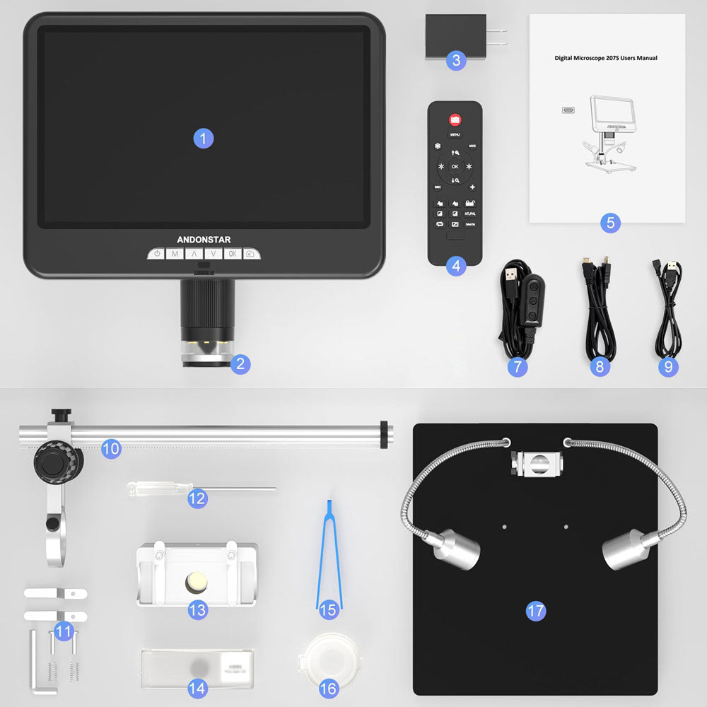 Andonstar AD207S-10Pro 10-inch UHD Screen and 26cm Stand Digital Microscope for Electronics Soldering and Repairing