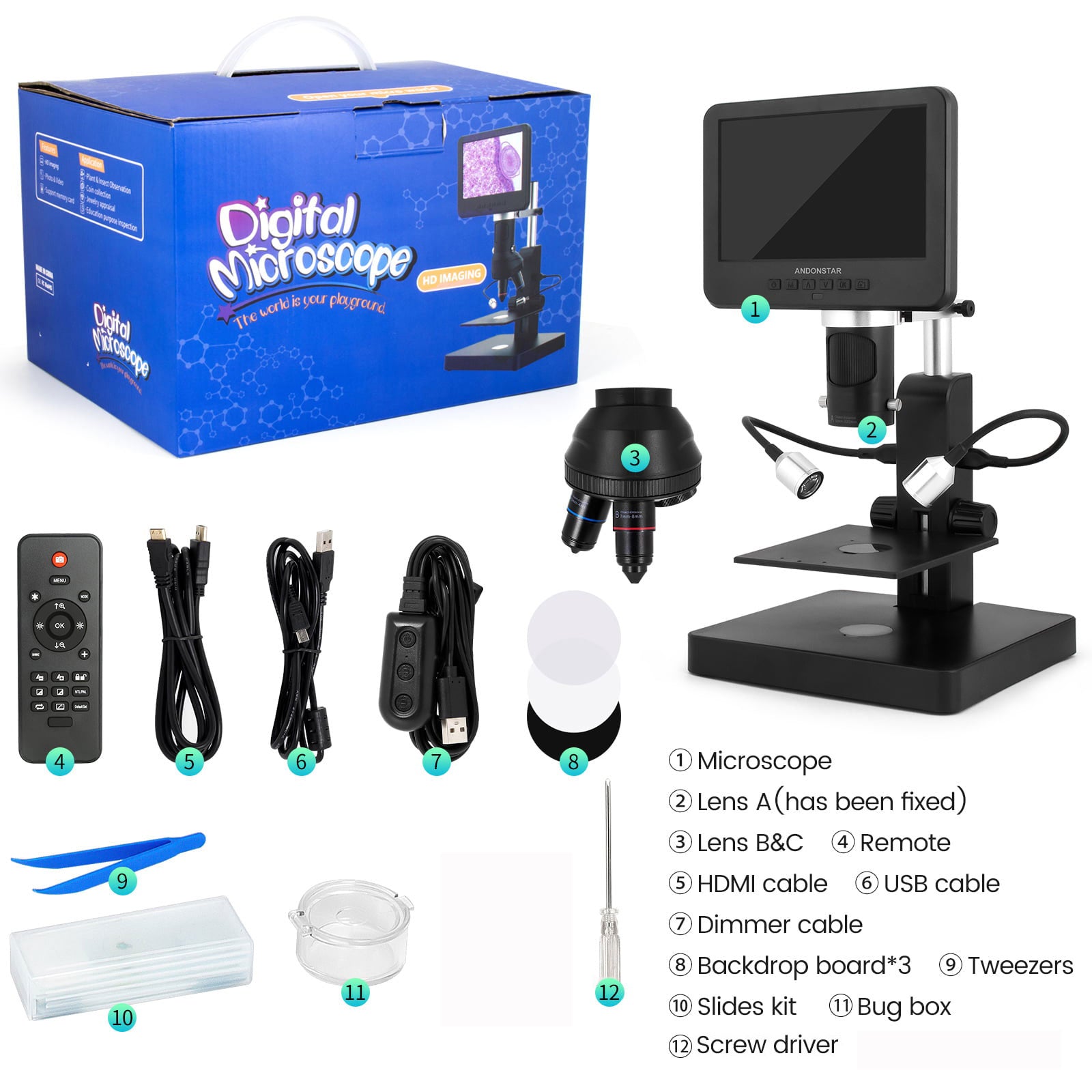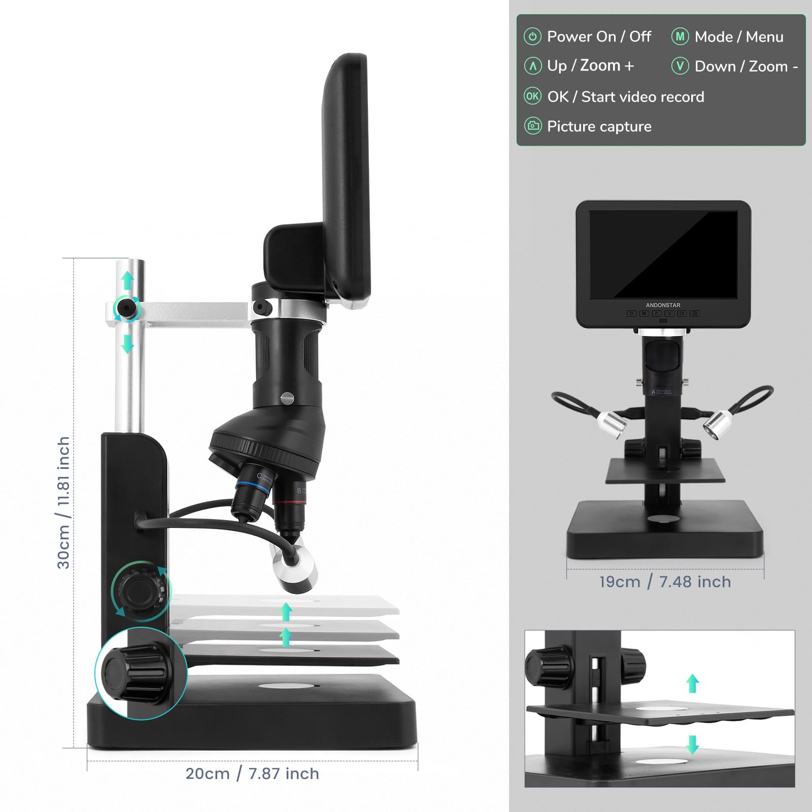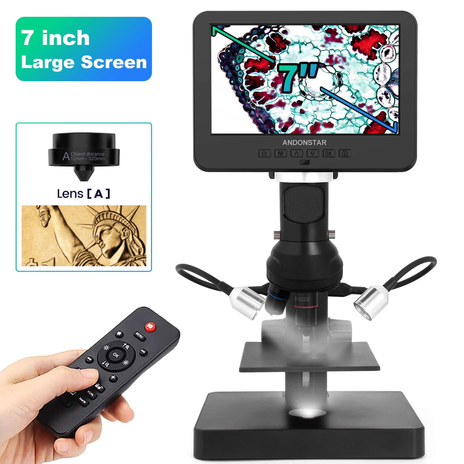 Andonstar AD246S-P 7-inch UHD Screen Digital Microscope for Electronics Repairing and Biological Observation
