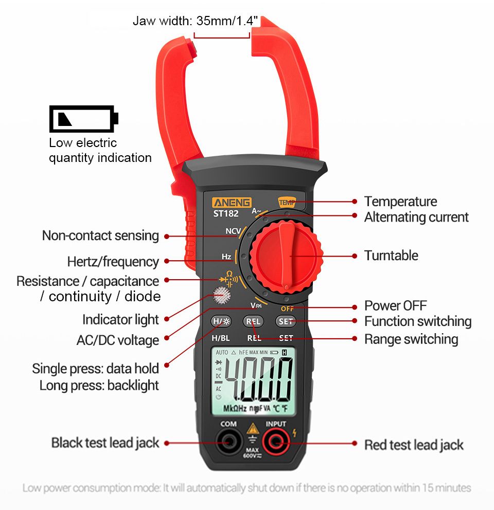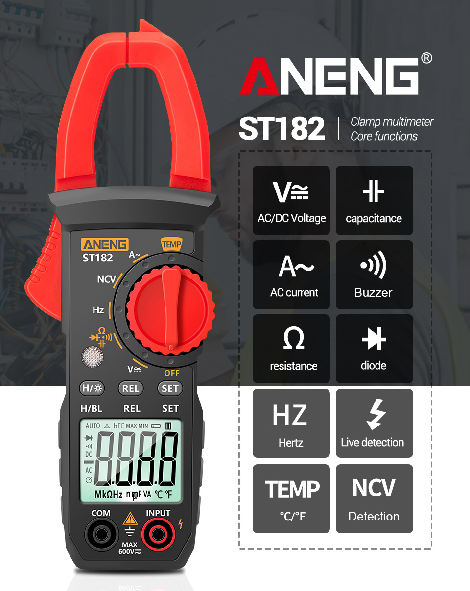 ANENG ST182 4000 Count Clamp Meter High-Precision Clamp Multimeter Tester to Measure Temperature