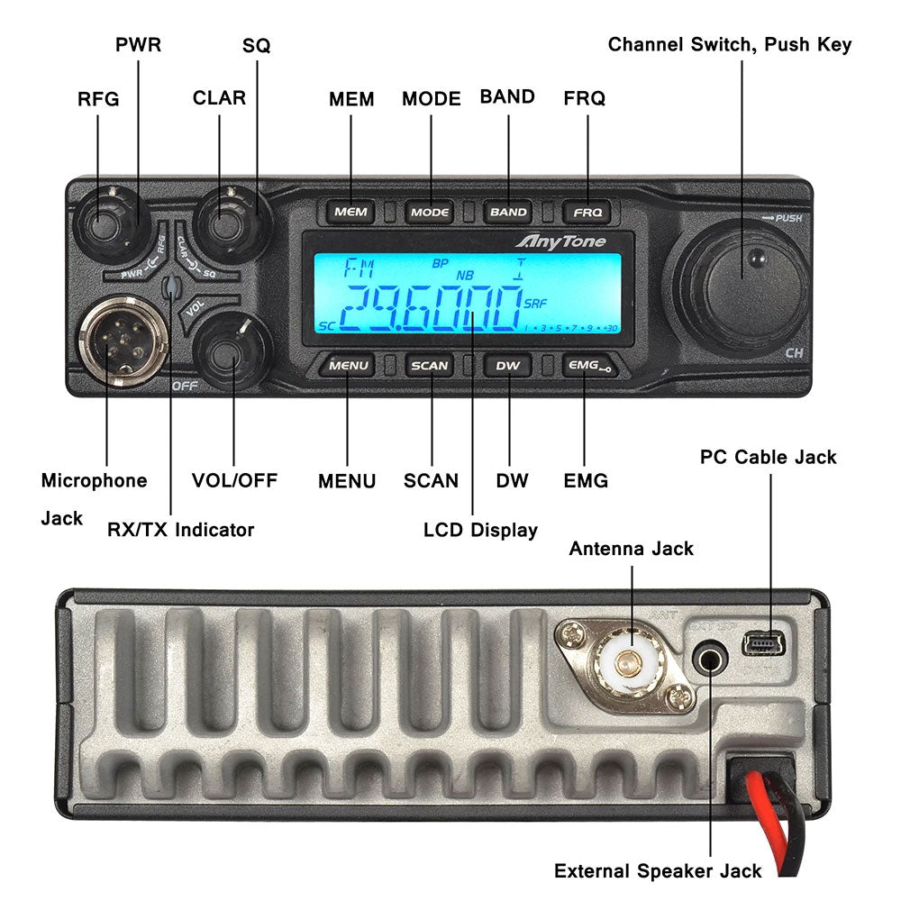 AnyTone AT-6666 28.000-29.699Mhz 60W CB Radio Mobile Radio AM/FM/SSB(PEP)/PA High-Power Transceiver