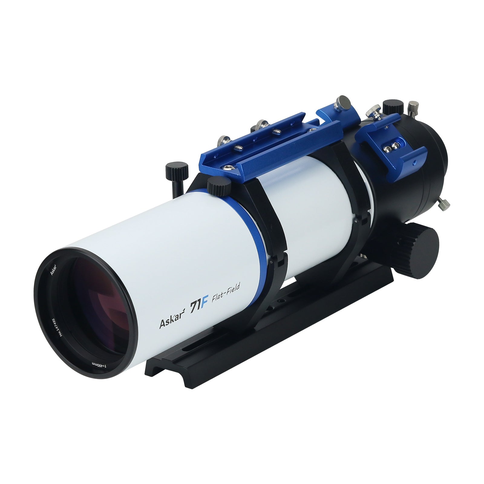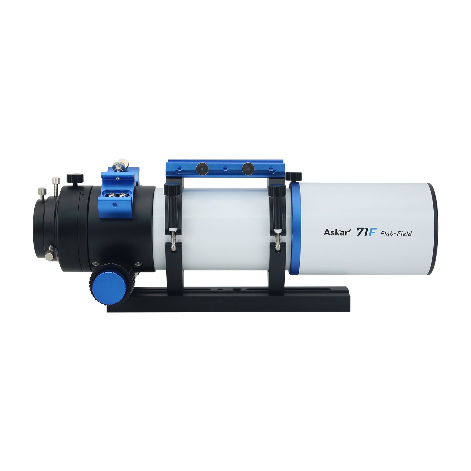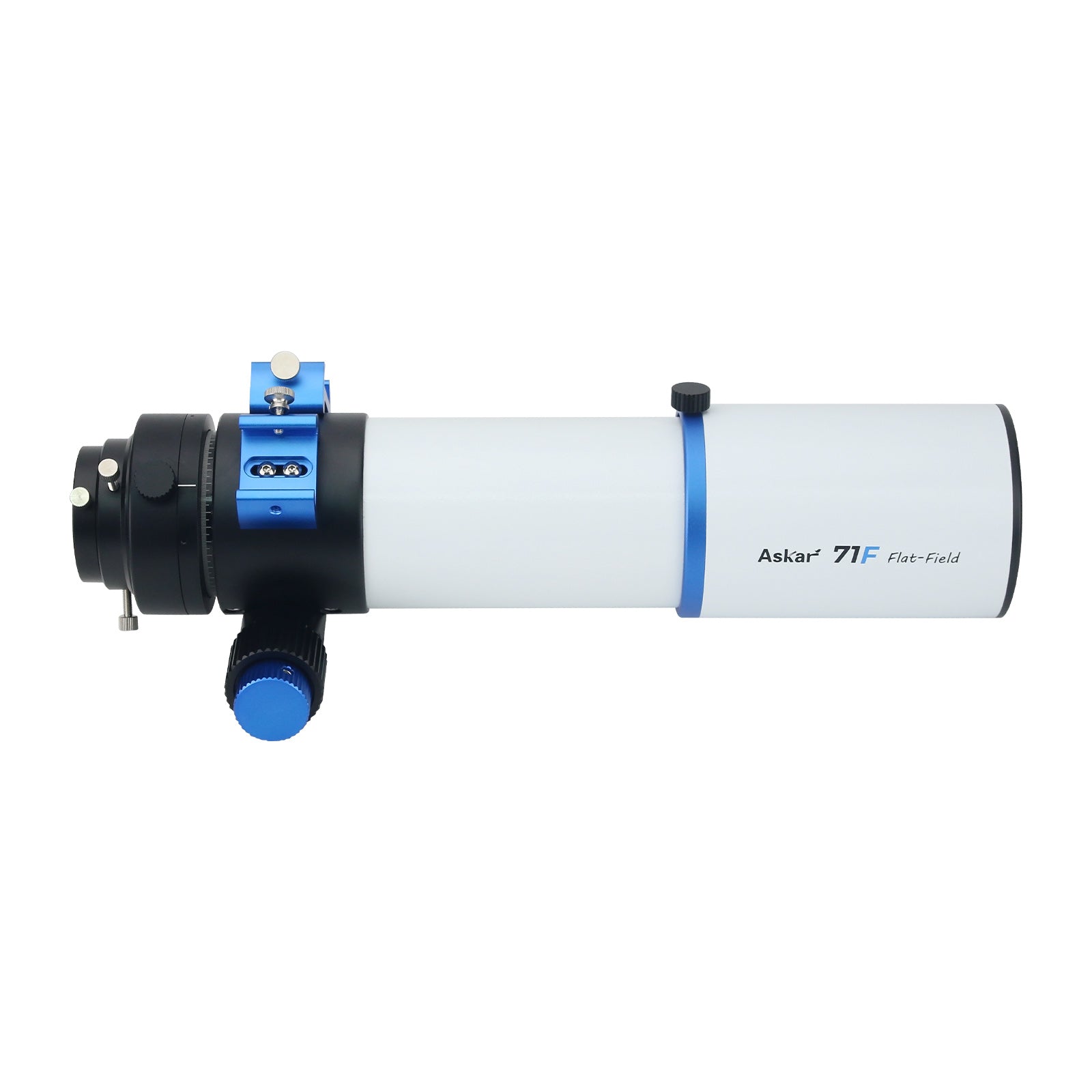 The Askar 71F is an OTA with an aperture of 71mm, a focal length of 490mm, and a native focal ratio of F6.9.