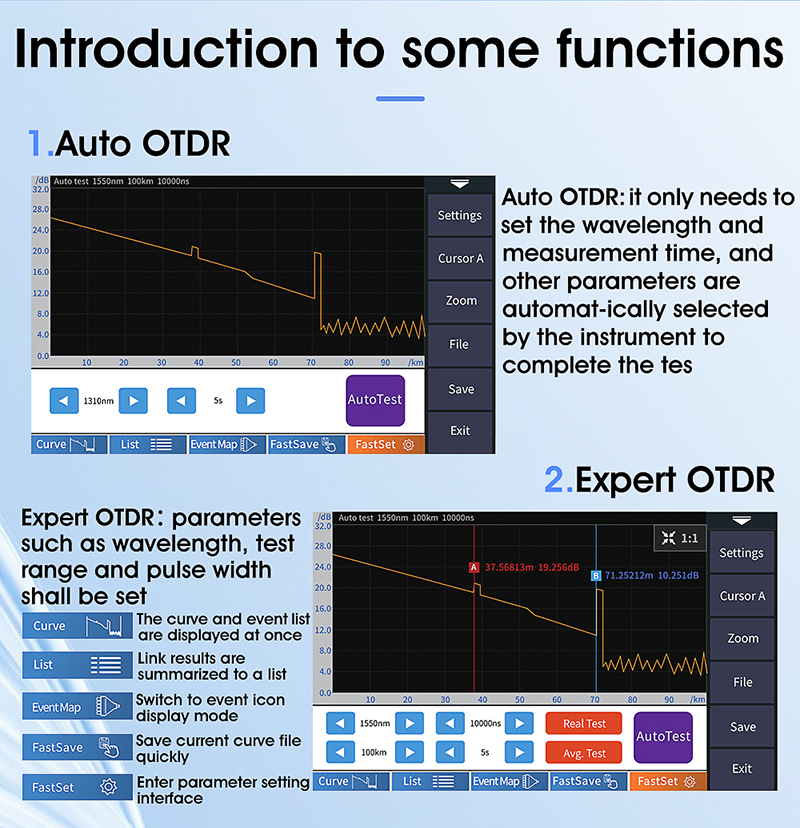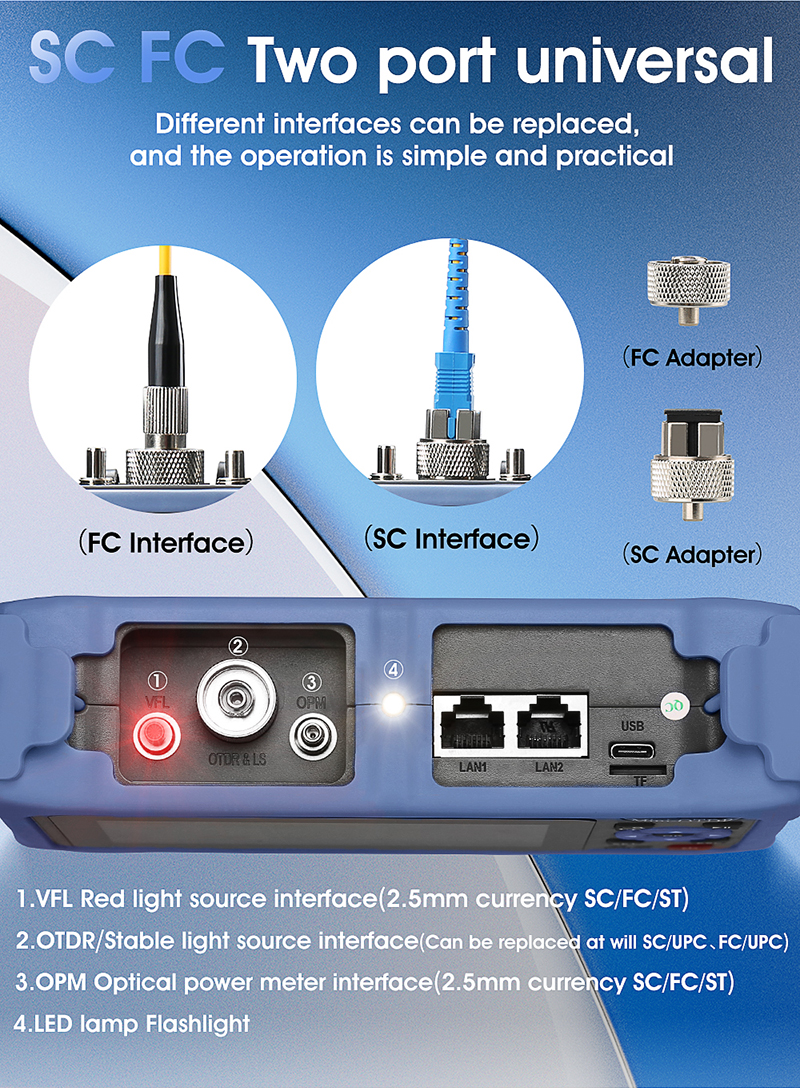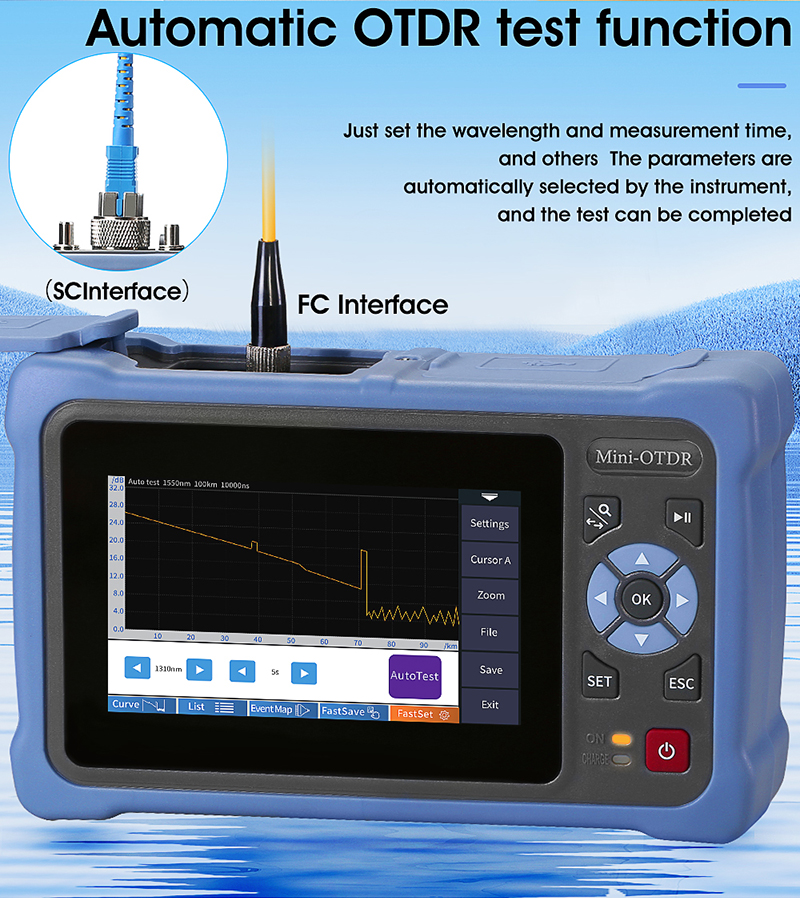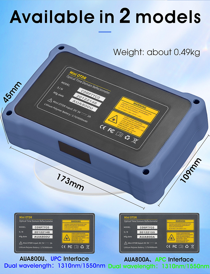 AUA800U UPC Port Multifunctional Mini OTDR Optical Time Domain Reflectometer 100KM 4.3-inch Touch Screen