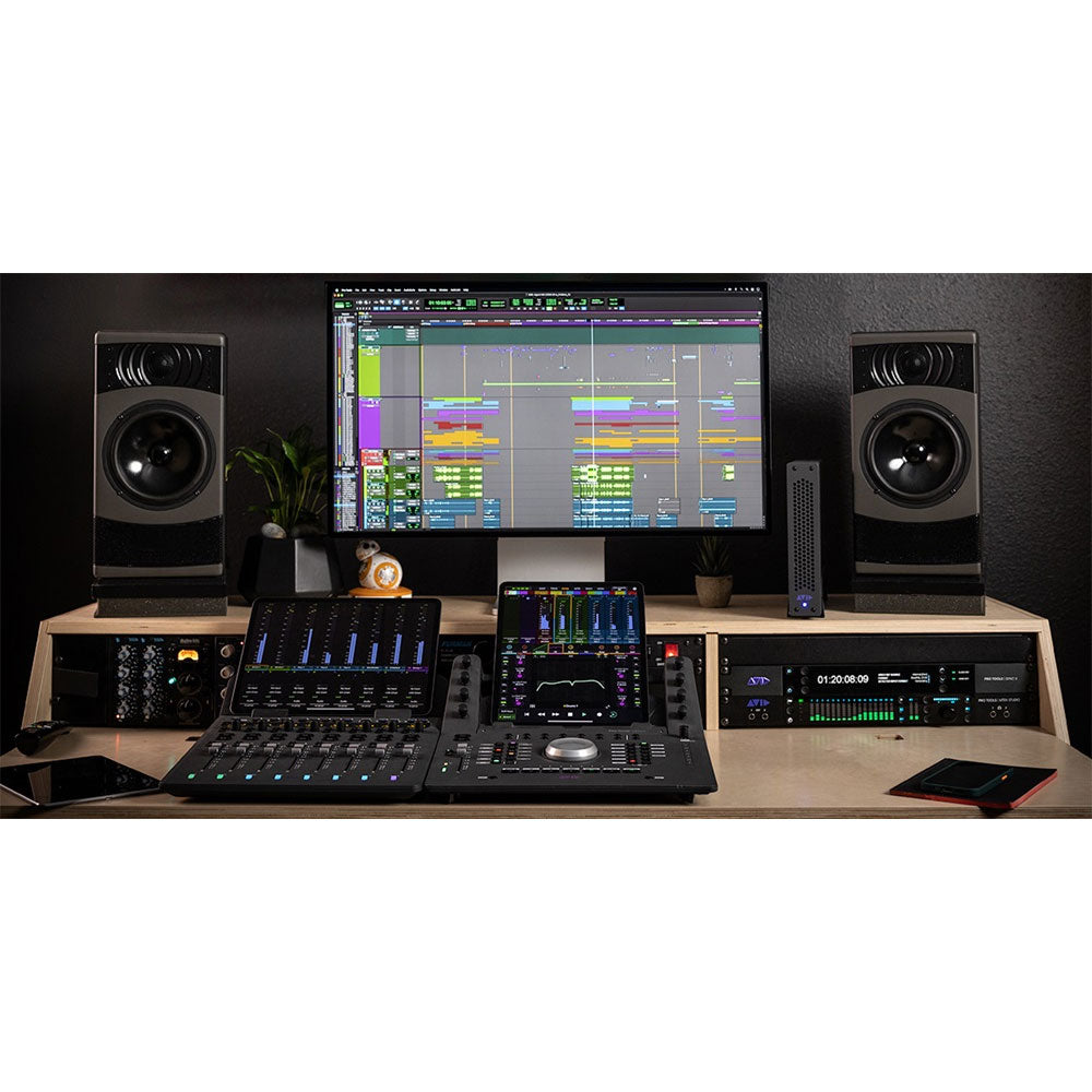 Get full transport controls, an assignable weighted jog wheel, and right-side switches to navigate, jog, shuttle, zoom, bank, switch workstations, and more. Scroll through projects or perform custom tasks with the two programmable touch strips. Get ICON-favorite "Scroll to Track" and "Scroll into View" features when using Pro Tools. And quickly access any channel in Tracks view or the Universe Scroller in Avid Control—no matter how huge the session.