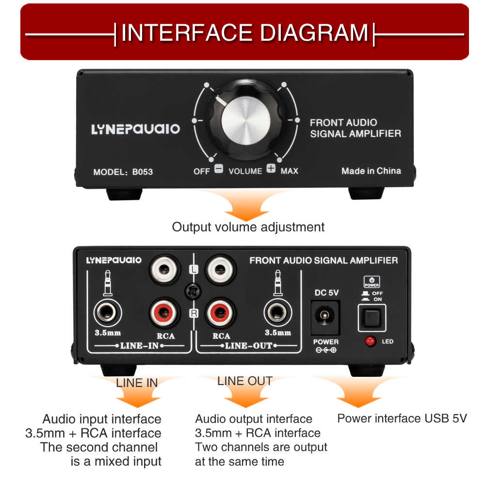 4. Wider range: 3.5mm + RCA interface for input and output, compatible with more devices