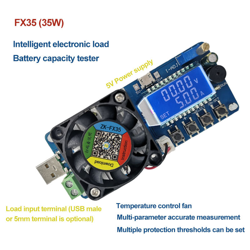 Battery Capacity Tester Constant Current Electronic Load USB Power Tester ZK-FX35 5A