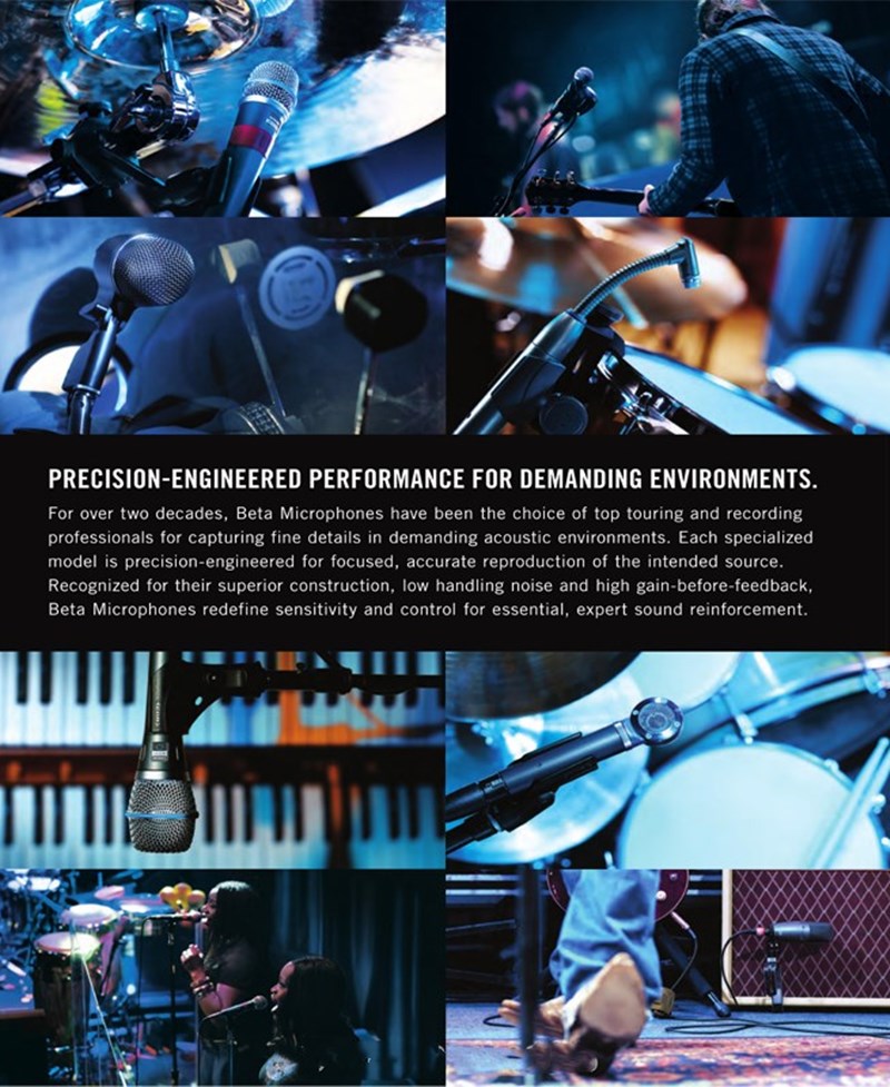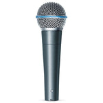 The BETA58A is a high-output super-cardioid dynamic vocal microphone designed for professional sound reinforcement and project studio recording. It has become a leading choice among vocalists and touring professionals worldwide. The BETA58A maintains a true super-cardioid pattern throughout its frequency range. The BETA58A has a shaped frequency response that is ideal for close-up vocals. The superb performance of this microphone is not affected by rough handling because of its rugged construction, proven shock mount system, and hardened steel mesh grille.