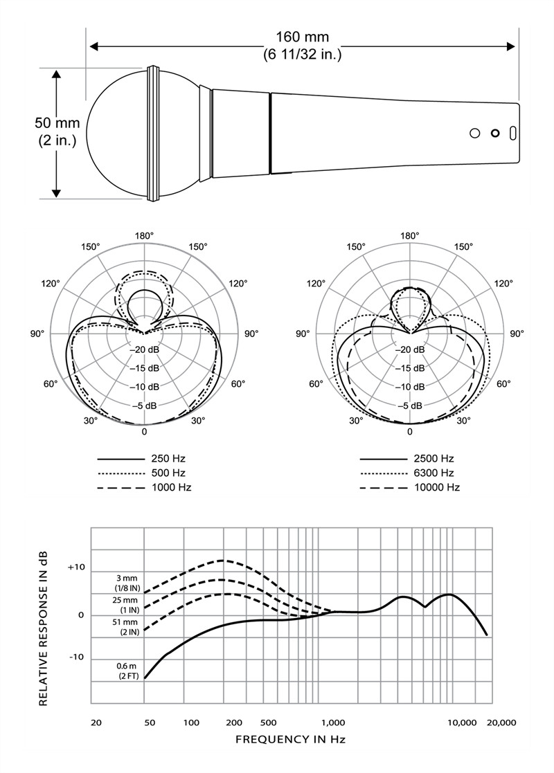 2. Uniform super-cardioid pattern for high gain before feedback and superior rejection of off–axis sound.