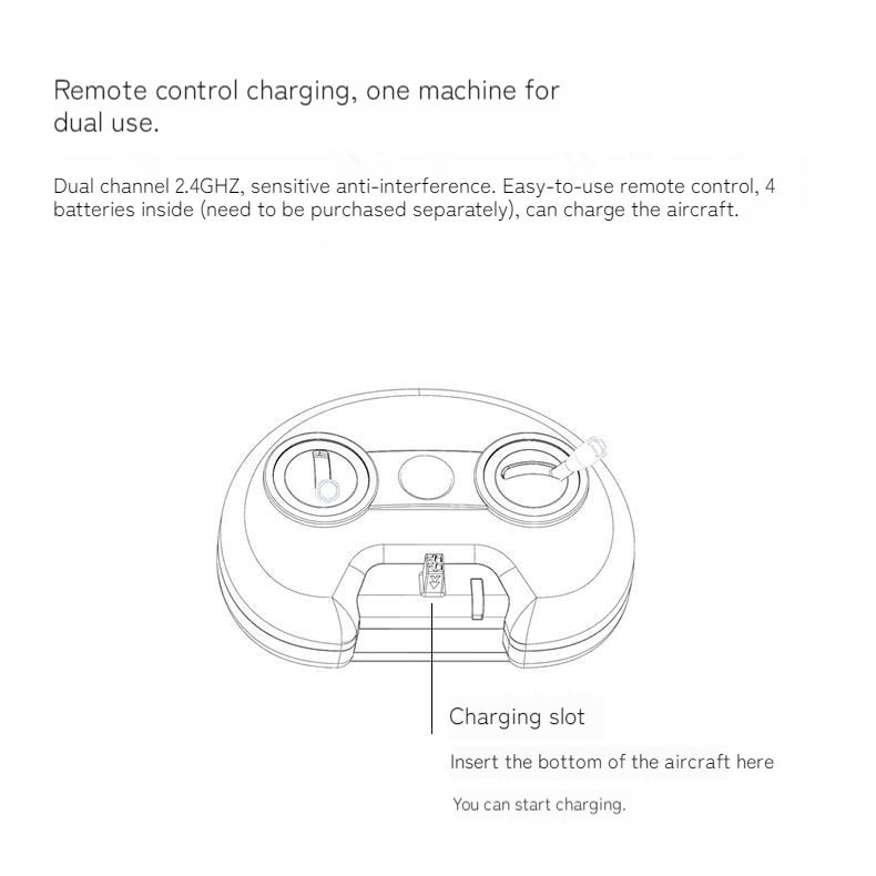- Charging slot: included in remote control