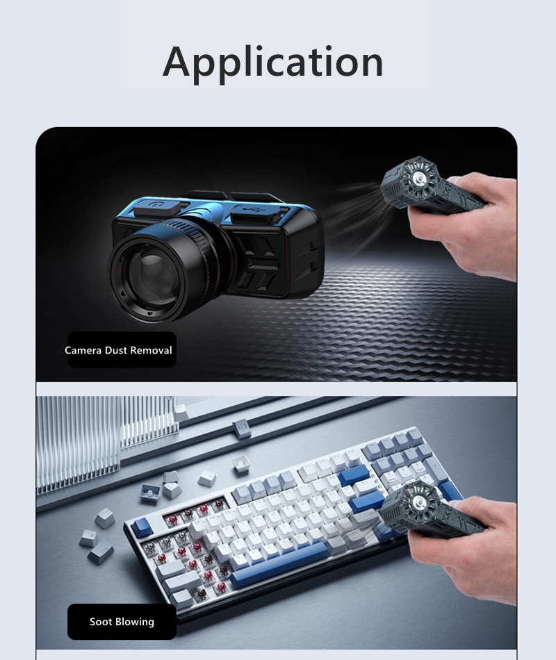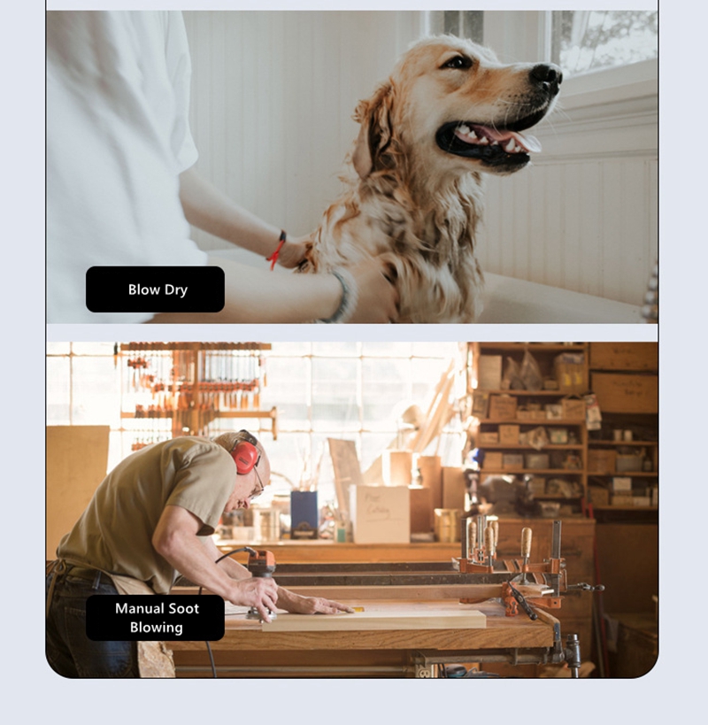 - Usage: Air cushion blowing and suction, computer equipment cleaning, industrial dust blowing, charcoal burning to support combustion, car blowing and snow blowing, film studio shooting and wind making, drying pets, and many other uses.