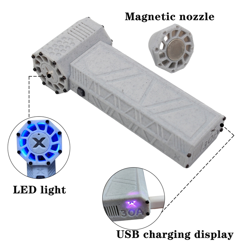 - Easy to use operation: Adopting three speed regulation with indicator light display. The user-friendly design of portable turbo fans ensures easy functionality. In addition, the charging board also has safe and reliable charging protection and overheating protection functions. The internal brushless motor can achieve high speeds of up to 120000 RPM (revolutions per minute).