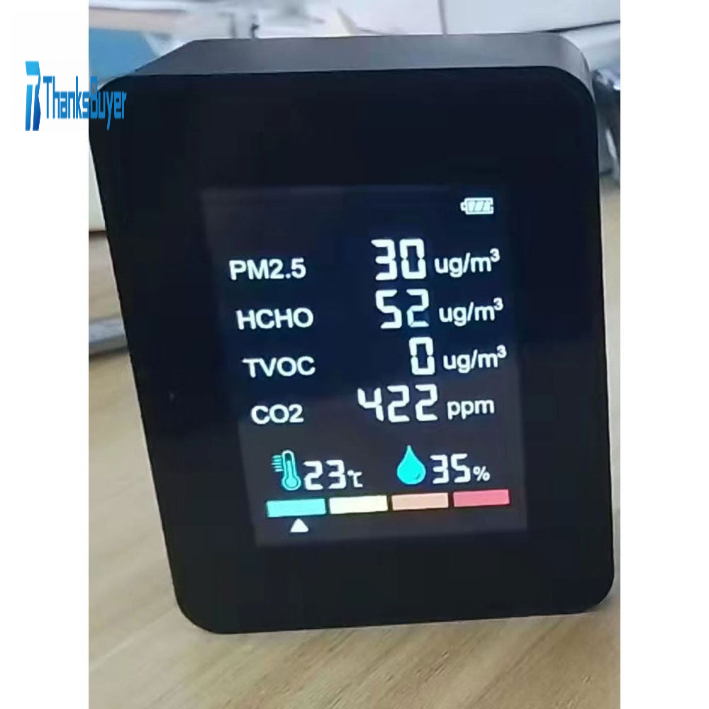 Black 6 In 1 Multifunctional Intelligent Air Quality Detector with Temperature and Humidity Detection