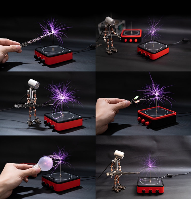 A: When you are close to the Tesla coil, there will be lightning hitting your hand. The feeling of hitting your hand is very weak, but there is a certain temperature (one-tenth of the temperature of a lighter) without any danger to life. Please keep away from flammable and explosive materials.