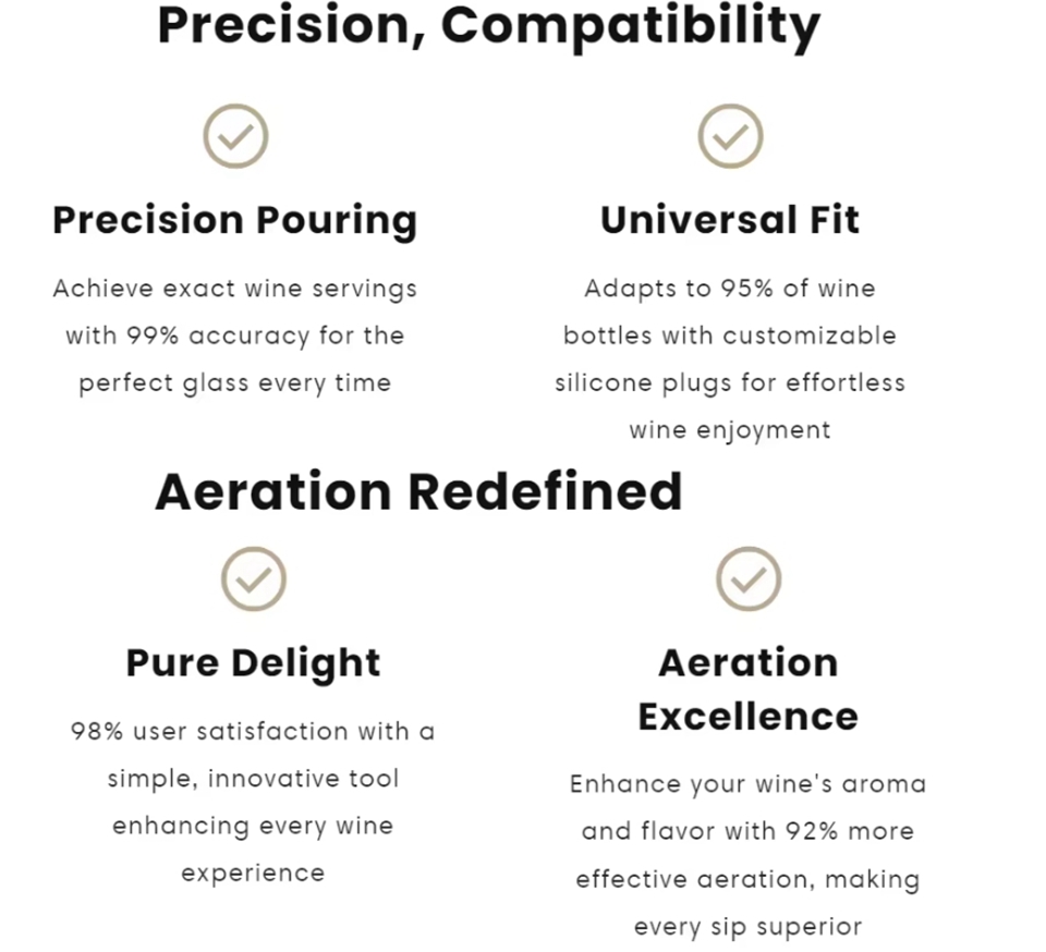 - Classy pour: fill your glass with just the right amount, no spills or guesswork.