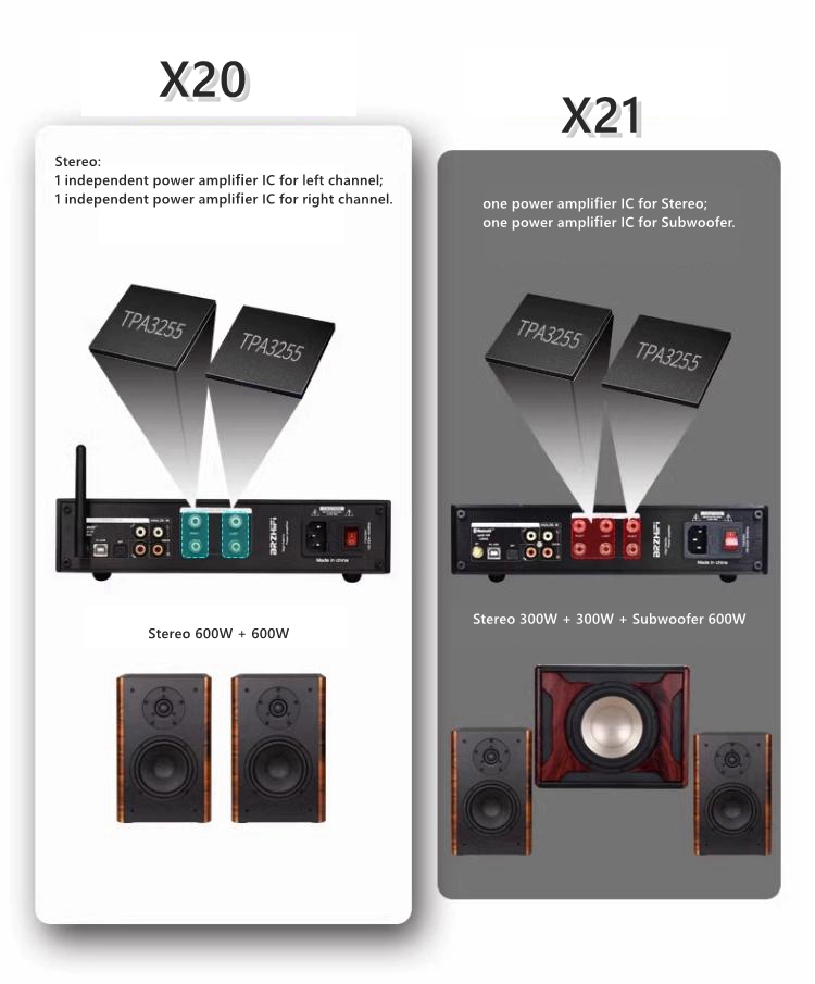 BRZHIFI Black X21 2.1Channel TPA3255 Dual Core HiFi Lossless Audio Power Amplifier Stereo 150Wx2+Subwoofer 300W Output