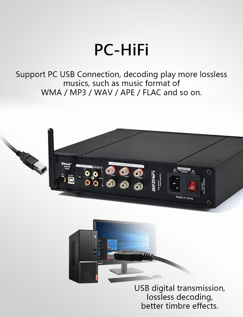 - Signal input: PC-USB/optical/coaxial/RCA/Bluetooth/USB Flash Drive