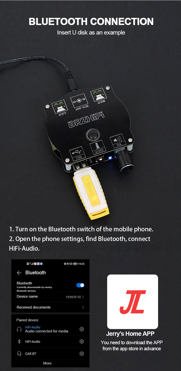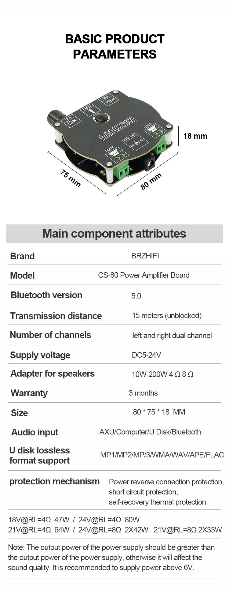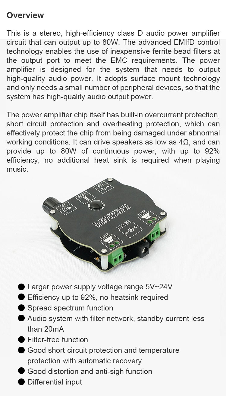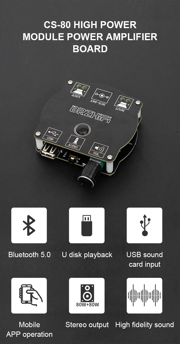 BRZHIFI CS-80 Bluetooth5.0 HiFi Power Amplifier Board Stereo 80W High Power Digital Amplifier Board