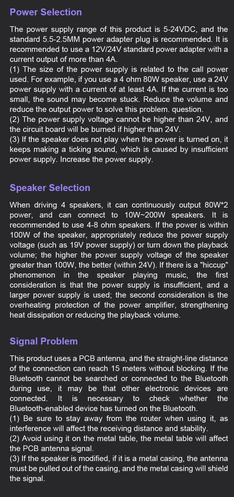 - Applicable speaker: 10W - 200W 4ohm 8ohm
